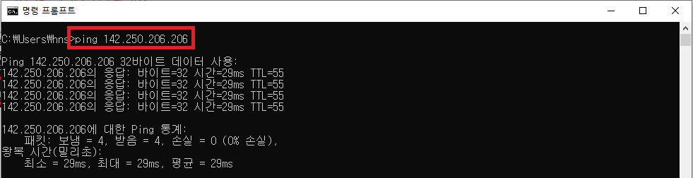 - 네트워크 상태를 점검하는 가장 기본적인 명령어