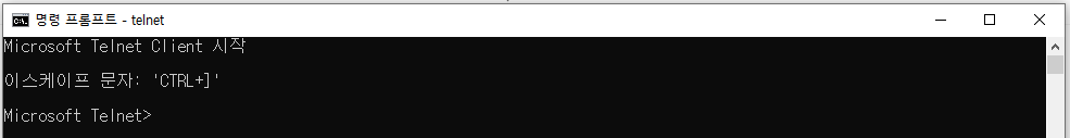 - 다시 telnet 명령어 실행하여, 텔넷 활성화 여부 확인